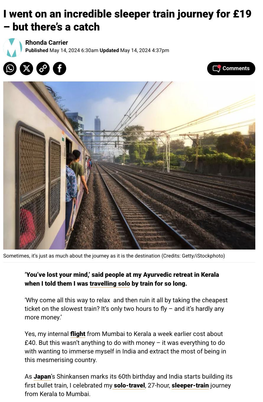 The £19 third-class 27-hour train across Indian that changed my life, Metro, May 2024